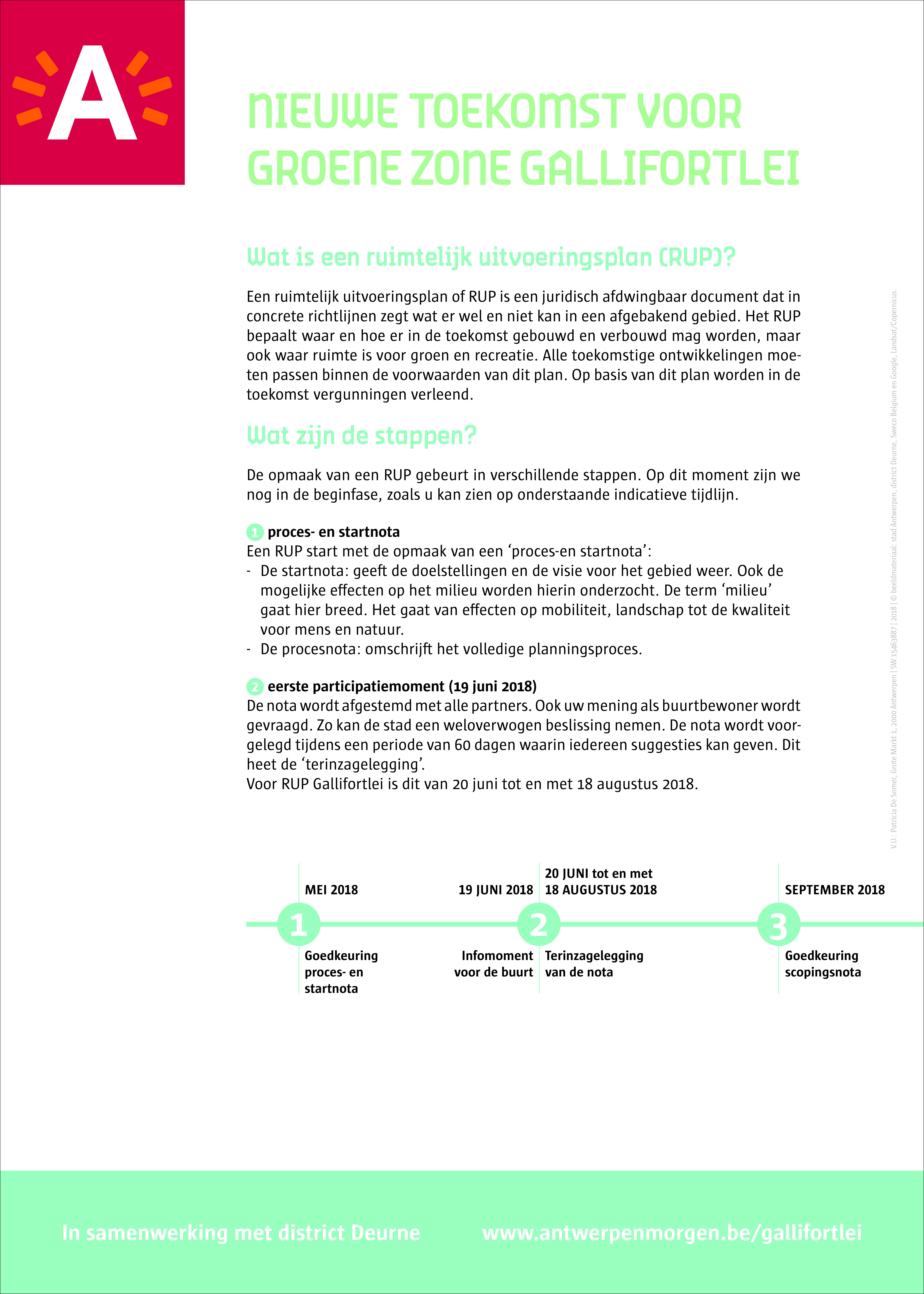 Deze nota werd voorgelegd tijdens een periode van 60 dagen waarin iedereen suggesties kon geven. Dit heet de ‘terinzagelegging’. Voor RUP Gallifortlei was dit van 20 juni tot en met 18 augustus 2018.